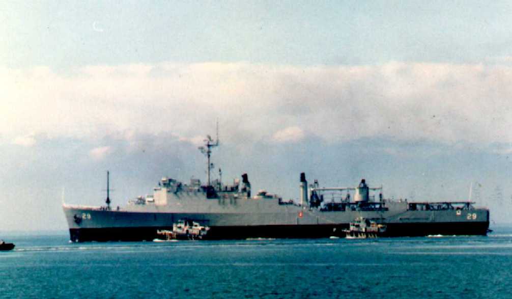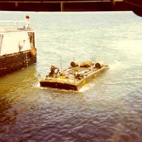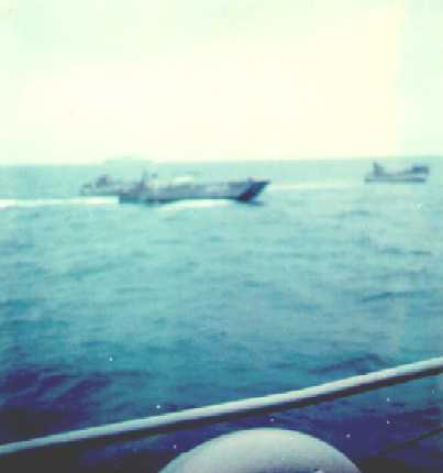 The following pictures were taken June 29, 1970. Looking aft while at anchor off Onslow Beach, NC to board marines and LVT's. In