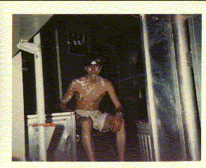 The following pictures were contributed by Harry Ishmael, BT3 of Chafee, MO. Pictures were taken from 1971-1974. David Dortch, Rocco Cherone doing PT, MMFN Greg Minor, Jerry Robison, Kenny Larkin, John Gibson, BT3, had chronic sea sickness, slept with a trash bag. Mark Whiting. Hernandez, Harry Ishmael, BT3, fire sides. Harry Isnaael, BT3. #1, smoking as usual. ACU2.